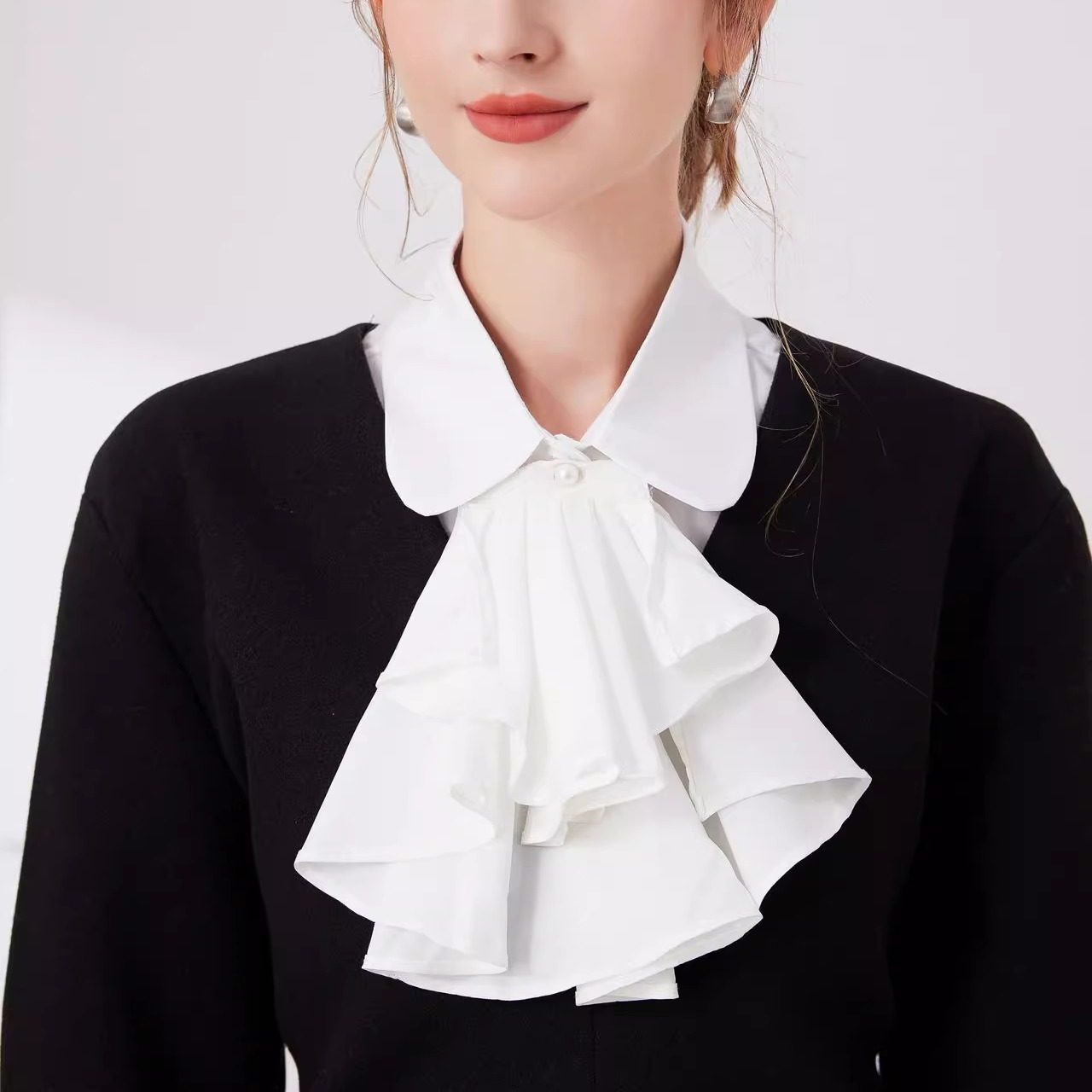 2024秋冬女衬衫假衣领圆领珍珠扣蝴蝶领结雪纺可拆卸装饰领子新款