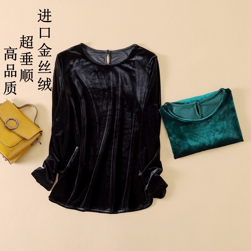 柔软色内搭丝绒及加厚秋冬女衬衫百搭德国丝绒白色宽松长袖t1224w
