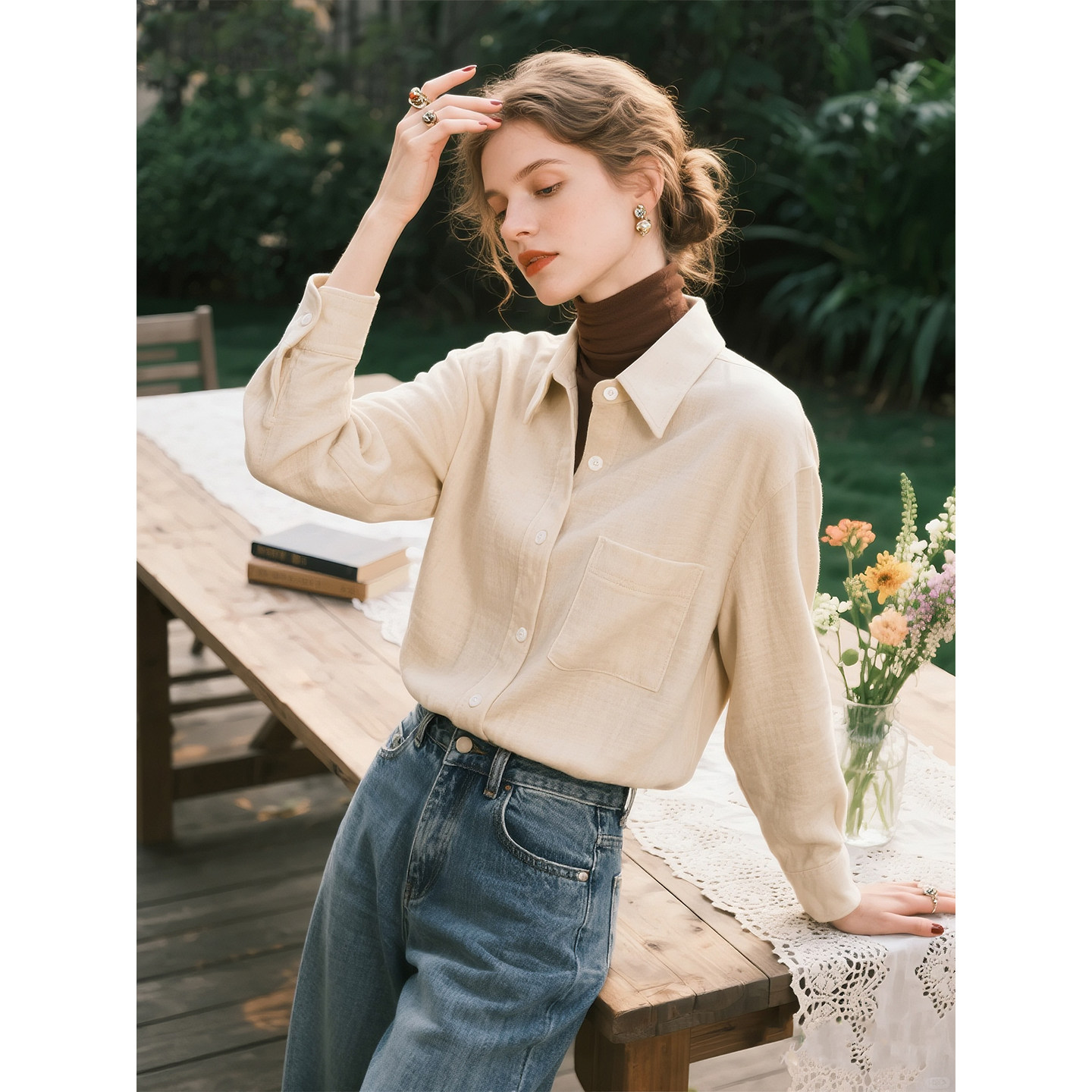 - 长袖衬衣女亚麻衬衫