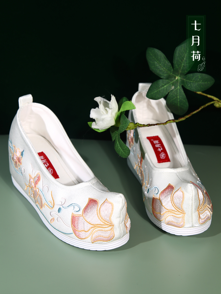 七月荷原创2025秋经典绣花鞋女内增高古装汉服鞋子古风马面裙日常