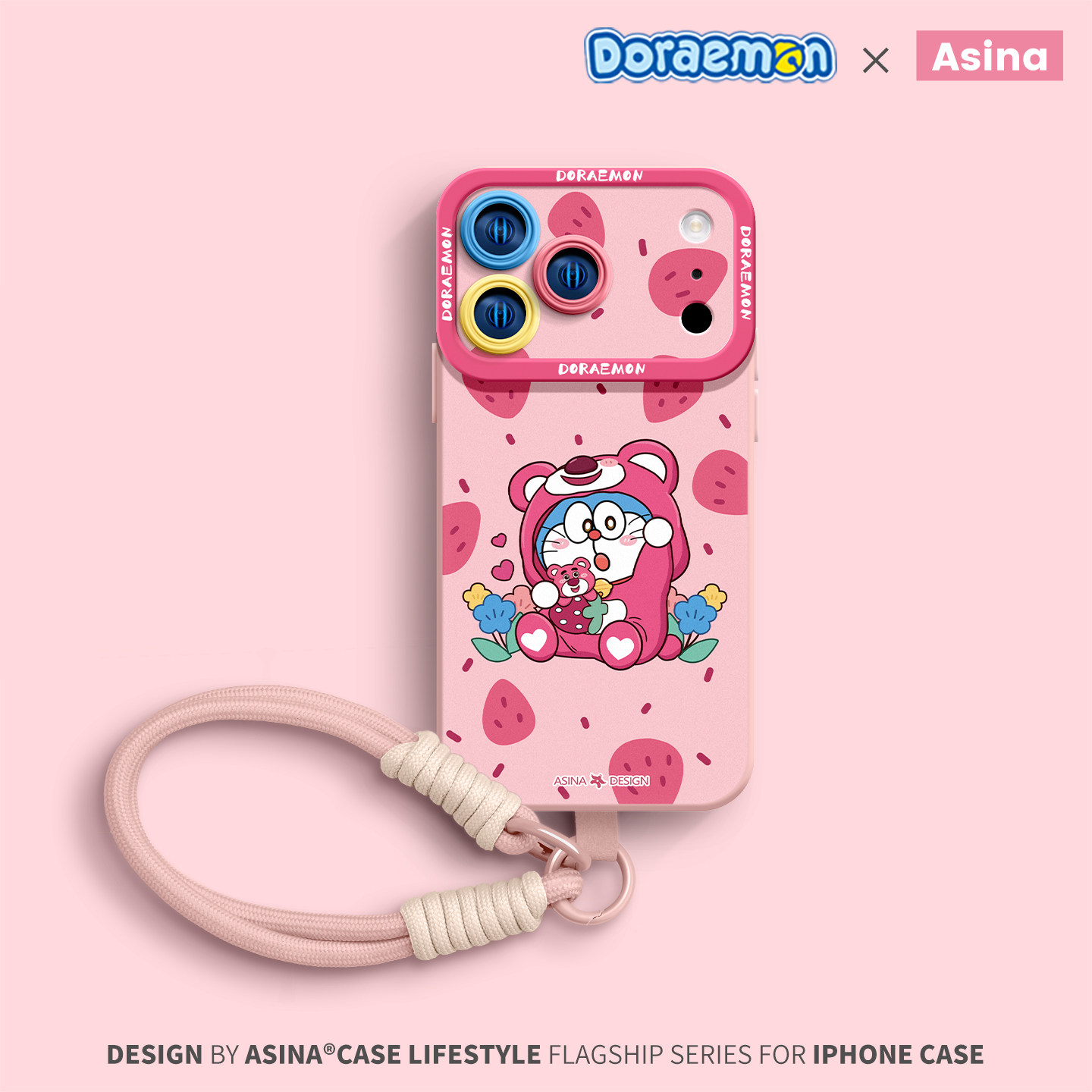 哇噻叮当猫适用苹果15Promax手机壳13液态硅胶腕带支架iPhone16Pro保护套可爱全包防摔ip14女xs网红软12新款