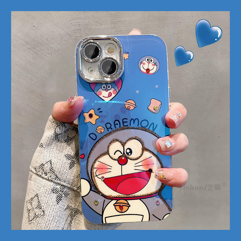适用苹果15ProMax手机壳iPhone16日系卡通可爱叮当猫15网红女款11自带镜头膜13pro高级感蓝光14pro新款硅胶套
