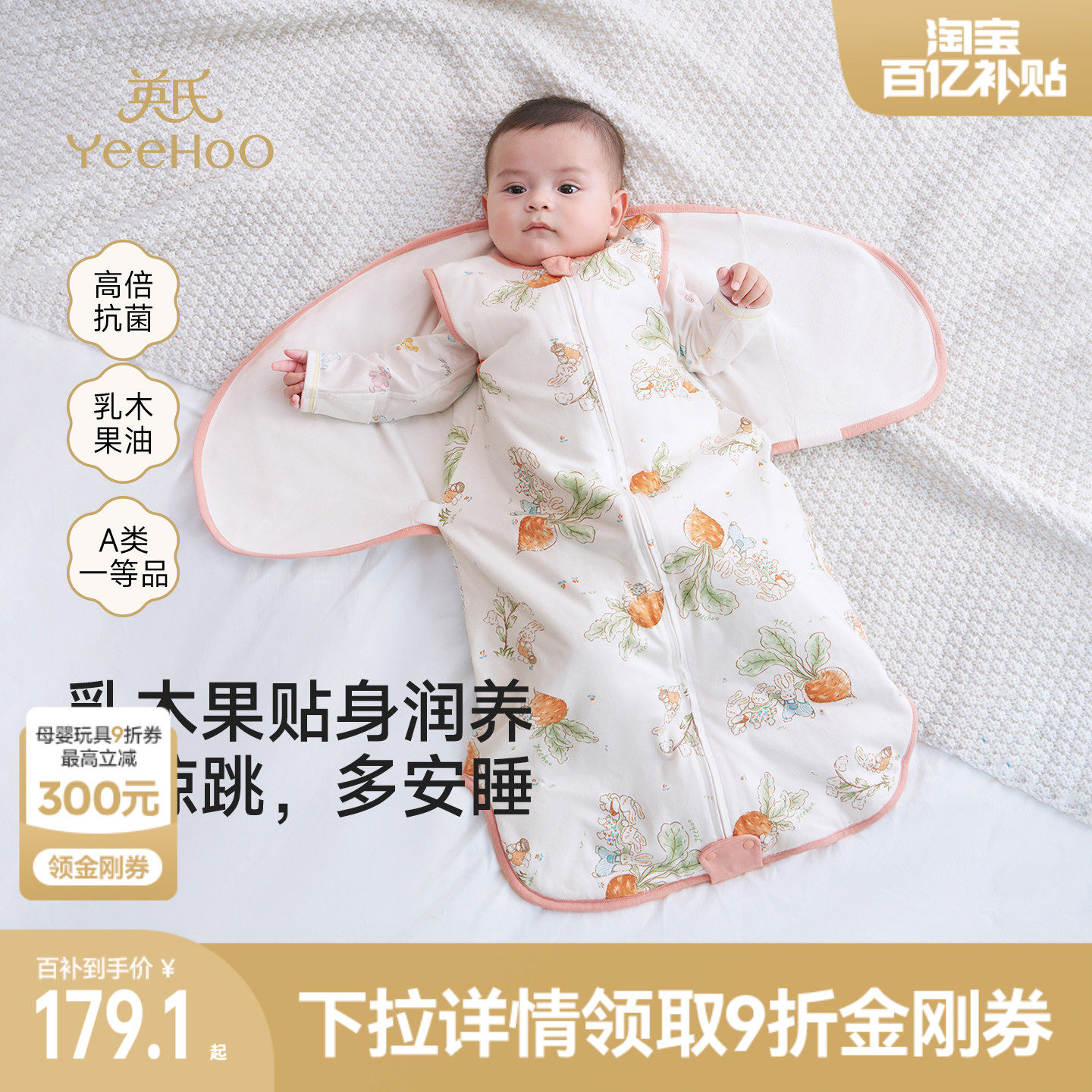 英氏婴儿防惊跳睡袋一体春秋冬四季新款5A抑菌新生儿宝宝恒温襁褓