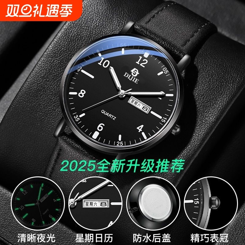 新款静音石英表潮流夜光韩版潮流时尚双日历初高中生轻奢男款手表