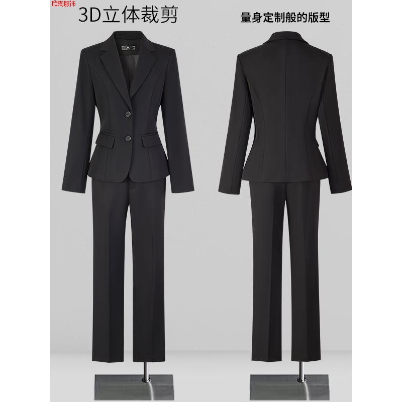 西装秦黑色高端精致职业装套装女正装面试西服售楼部工作服春秋季