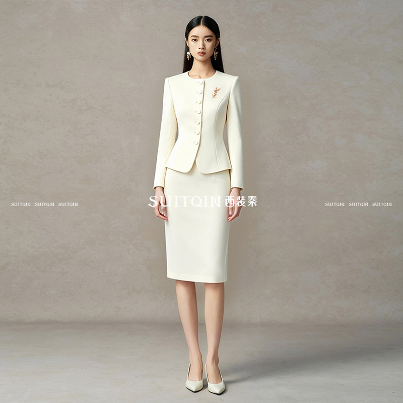 SUITQIN西装秦女装米白色职业装套装高级感前台接待美容院工作服