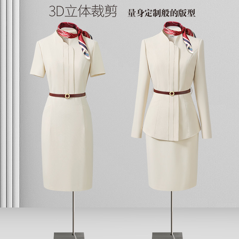 职业装套装春季长袖外套新中式连衣裙酒店前台客服售楼部女工作服