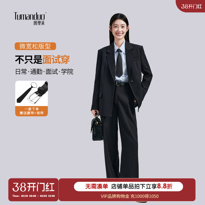 图曼朵黑色西装外套女大学生小个子面试正装西服套装西装裤职业装