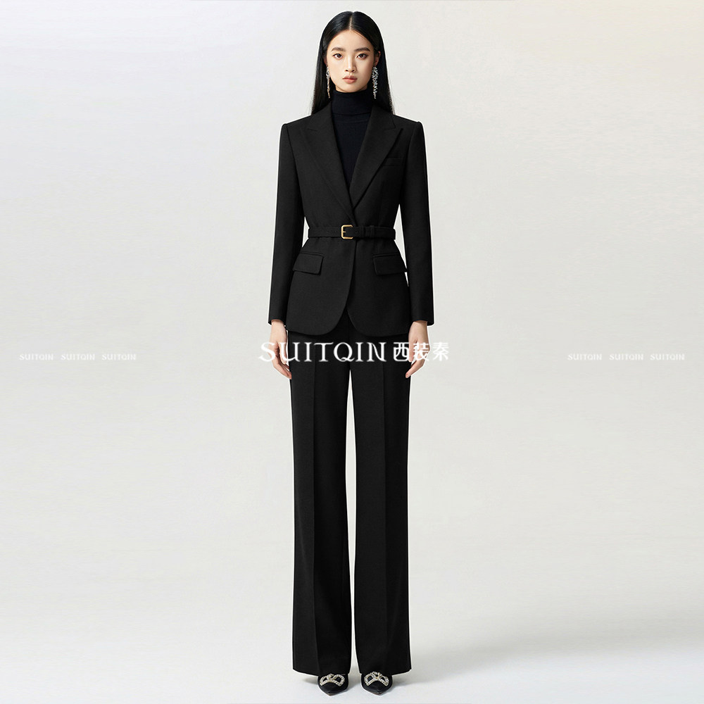 SUITQIN西装秦黑色毛呢西装职业装套装女士秋冬前台售楼部工作服