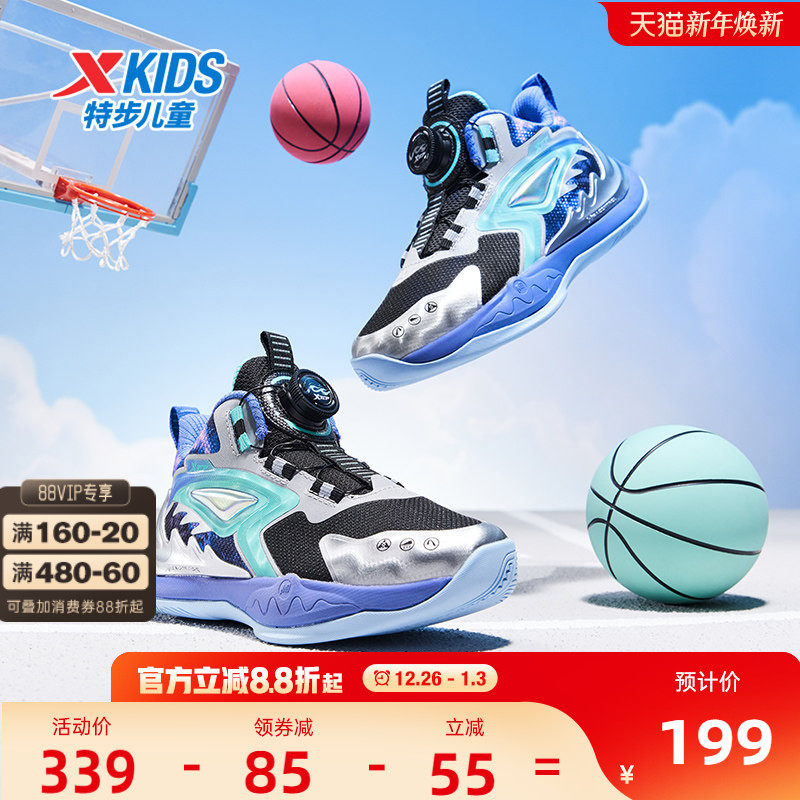 特步童鞋冬季新款正品男款实战耐磨篮球鞋男童减震回弹防滑运动鞋