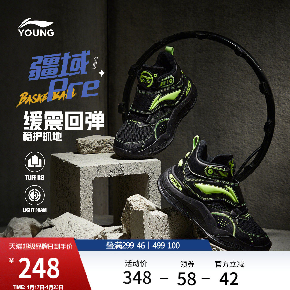 李宁童鞋篮球鞋男大童官方正品疆域 Pre耐磨防滑回弹儿童鞋运动鞋