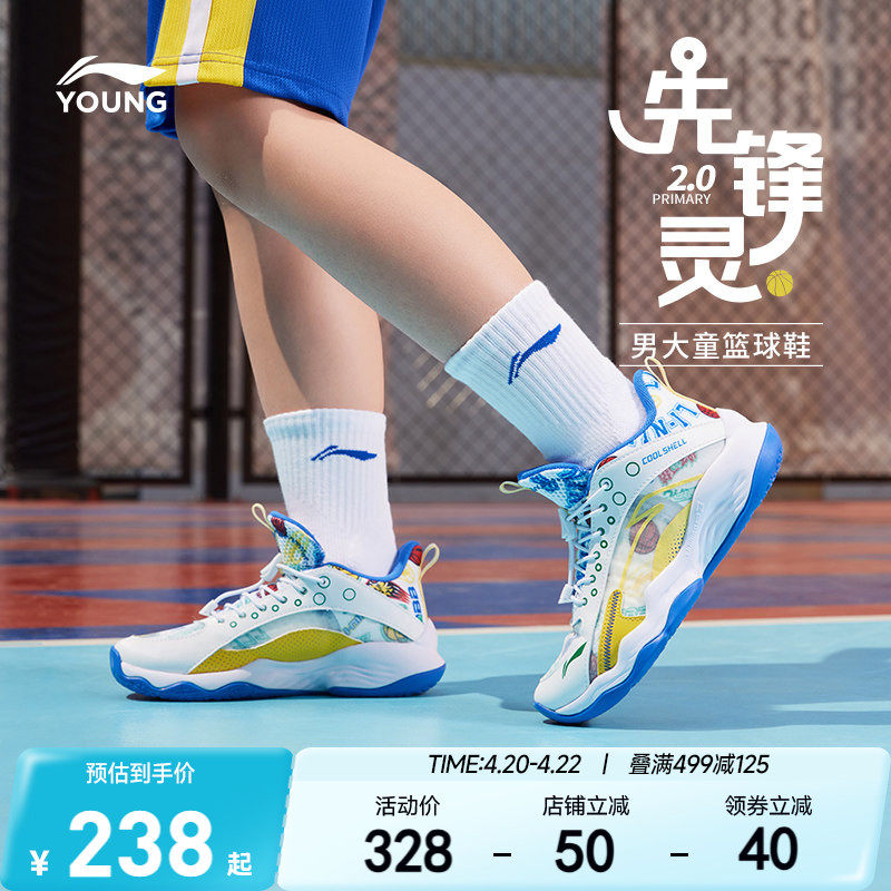 李宁天影1 V2䨻专业儿童篮球鞋轻便软底春夏款男大童青少年运动鞋
