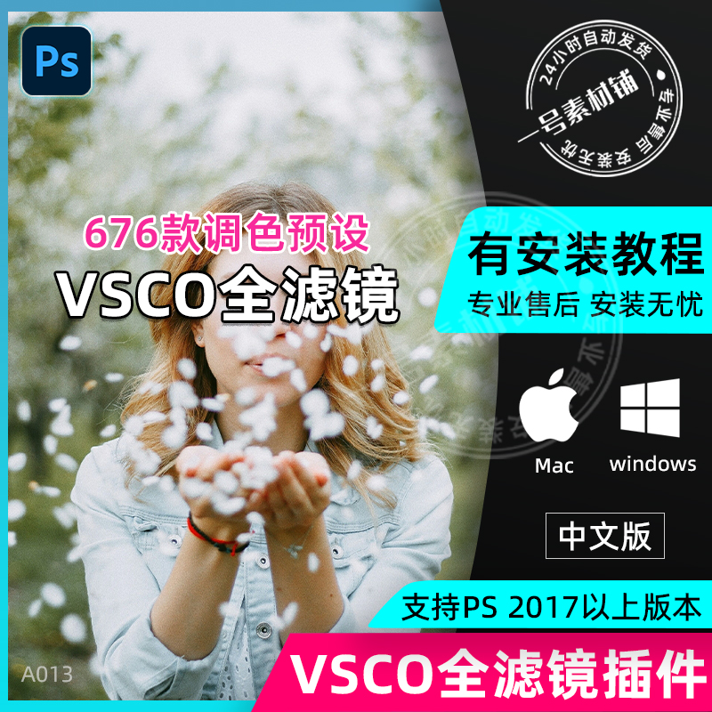 【兼容PS2024】VSCO电脑版全滤镜会员预设PS插件一键调色win_mac