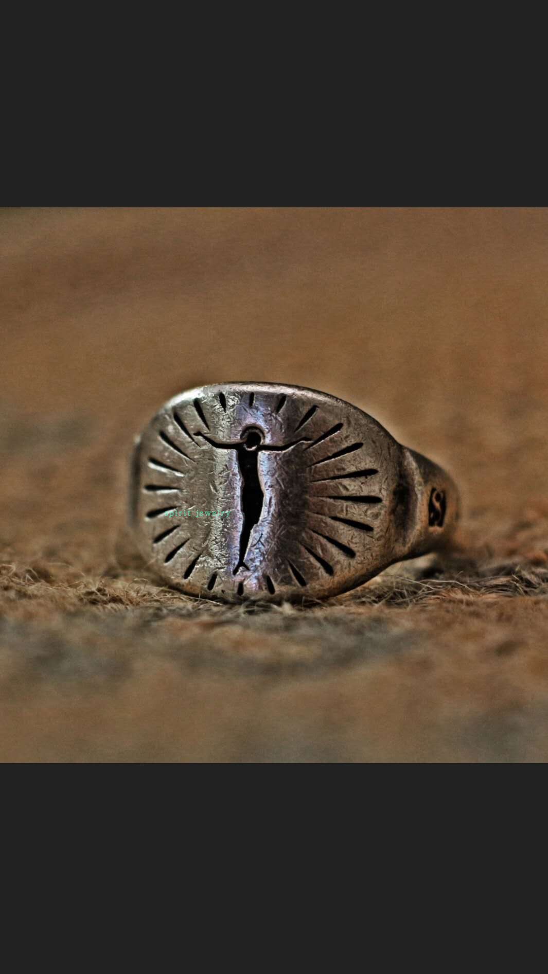 戒指纯银情侣复古手工平打受难日的光辉图案自圆弧随形欧美简约款