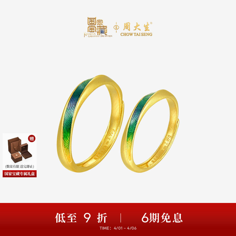 周大生国家宝藏联名|千里江山黄金戒指足金情侣对戒男女生日礼物