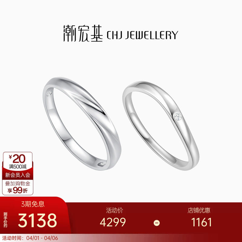 潮宏基铂雅铂金钻石戒指PT950戒圈指环手饰情侣对戒百搭生日礼物