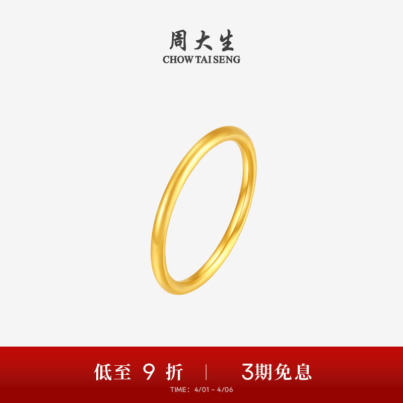 周大生实心黄金戒指男女足金三生三世情侣订结婚素圈尾戒生日礼物