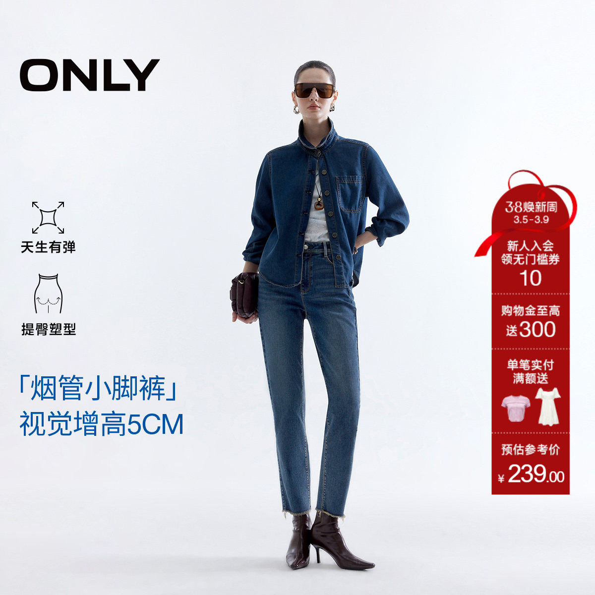 ONLY春季潮流脚口毛边高腰弹力显瘦九分烟管直筒小脚牛仔裤女