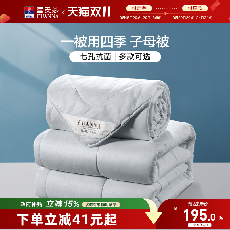 富安娜双宫茧桑蚕丝被子母二合一被纯棉冬被春秋空调被子四季被芯