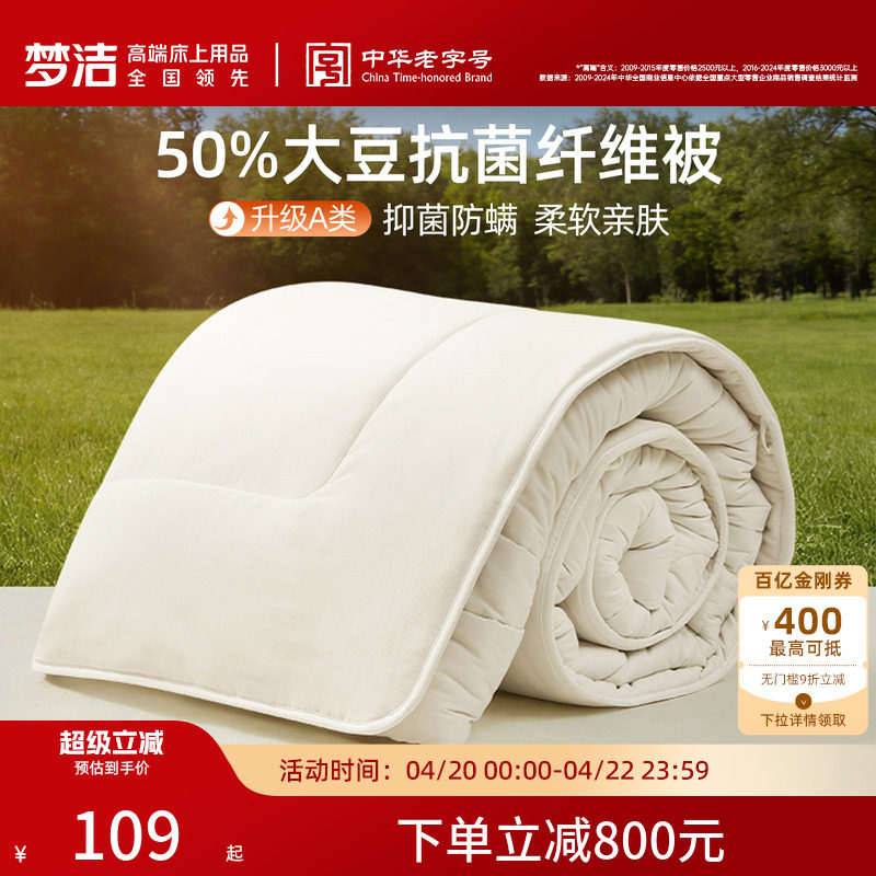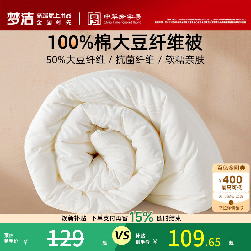 梦洁大豆被子被芯春秋被100纯棉夏被学生纤维被抗菌二合一子母被
