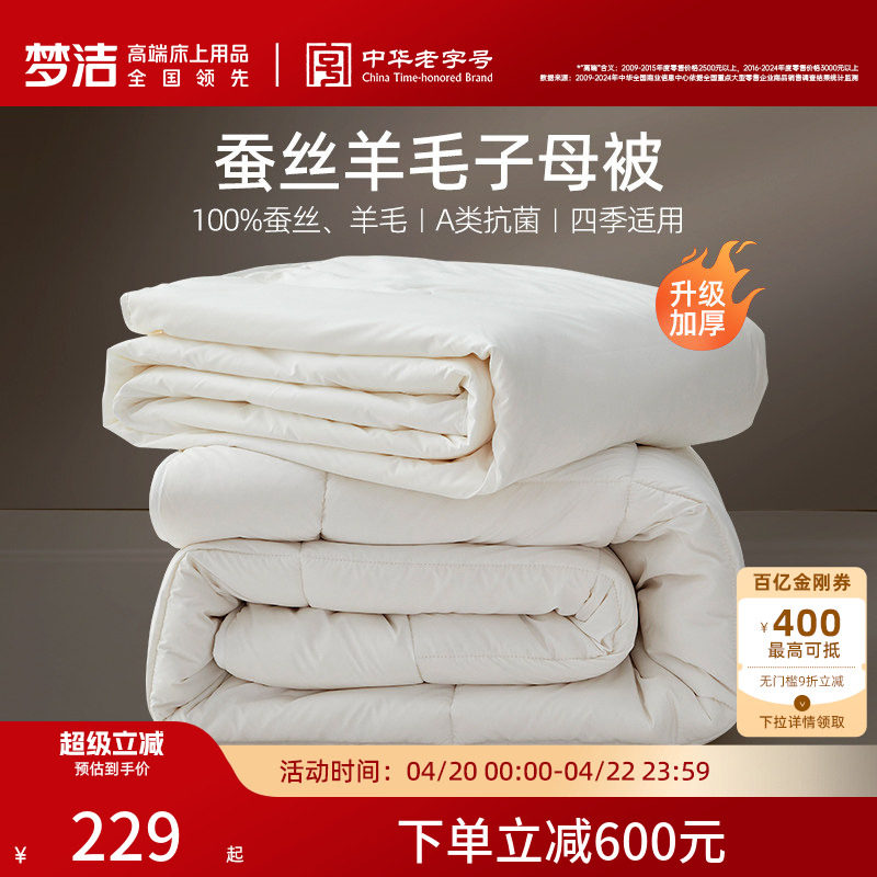 梦洁家纺100蚕丝被子被芯秋冬子母二合一春秋被夏被四季通用送礼