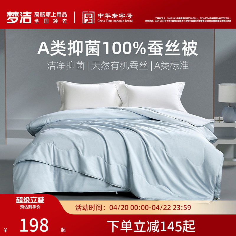 梦洁家纺100蚕丝被子被芯春秋二合一子母被夏被A类抗菌2026新品