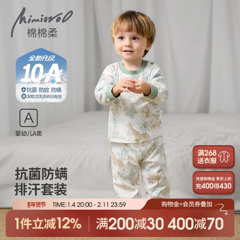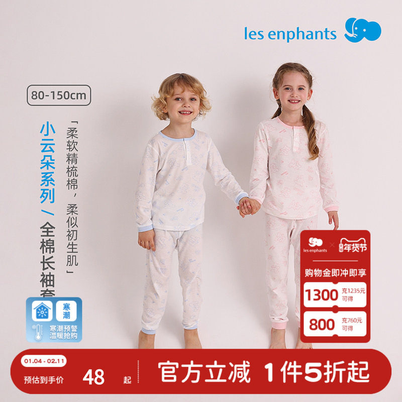 丽婴房全棉长袖长裤家居套装男女童内衣套装2025新品秋款儿童睡衣