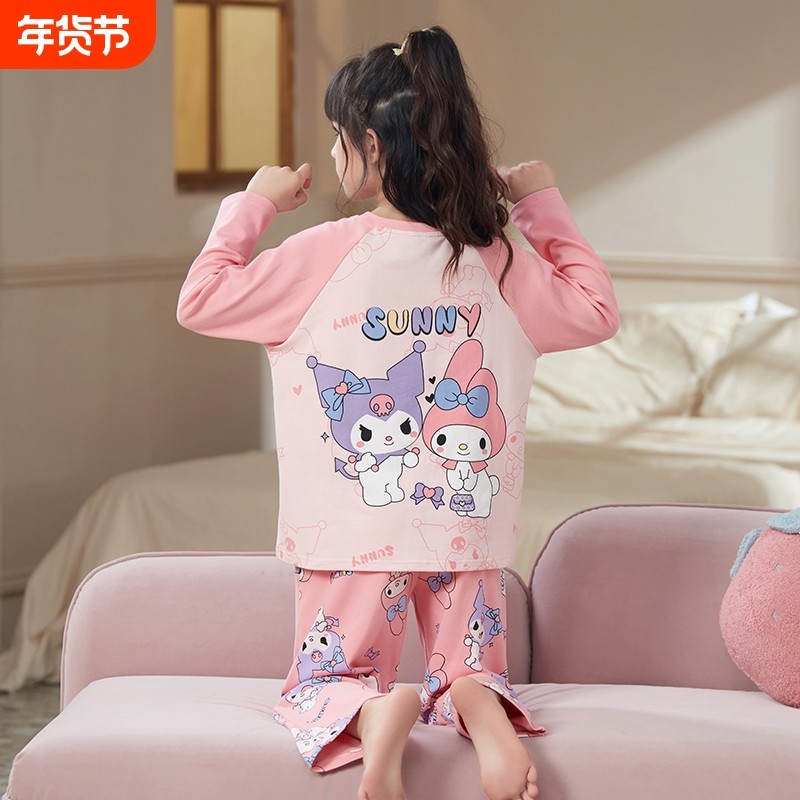2025女孩女童睡衣儿童新款长袖套装大童可爱春秋款夏季家居服小八