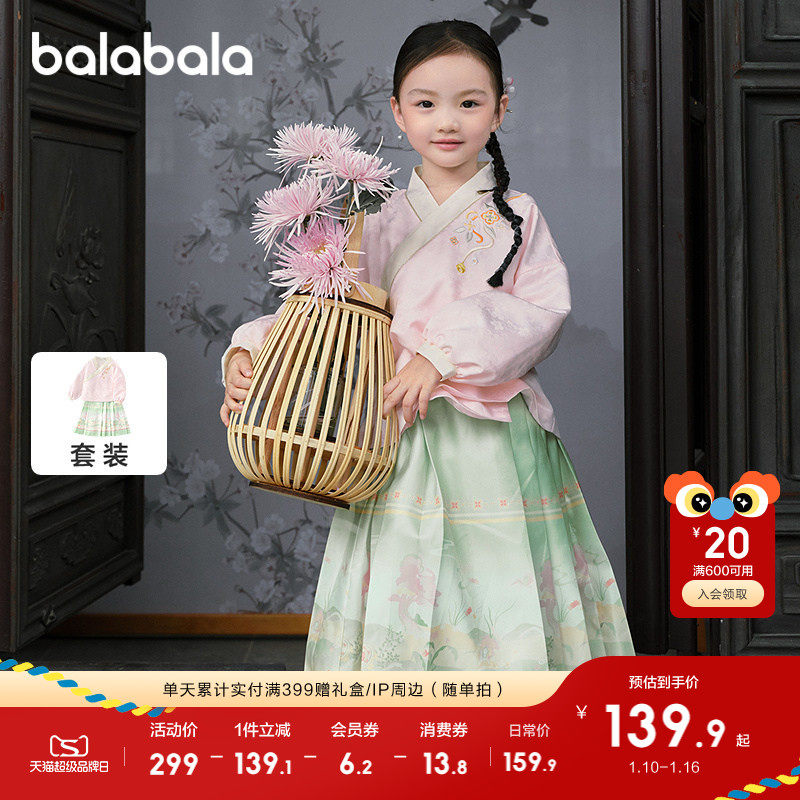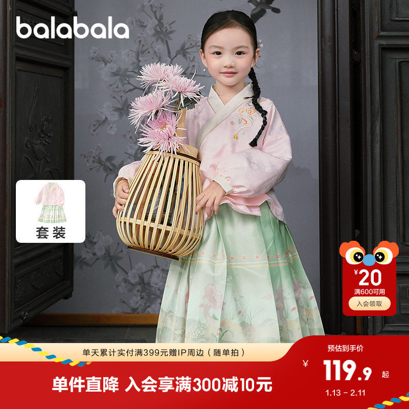 巴拉巴拉女童马面裙儿童长袖套装衣服秋款两件套时尚国风刺绣洋气