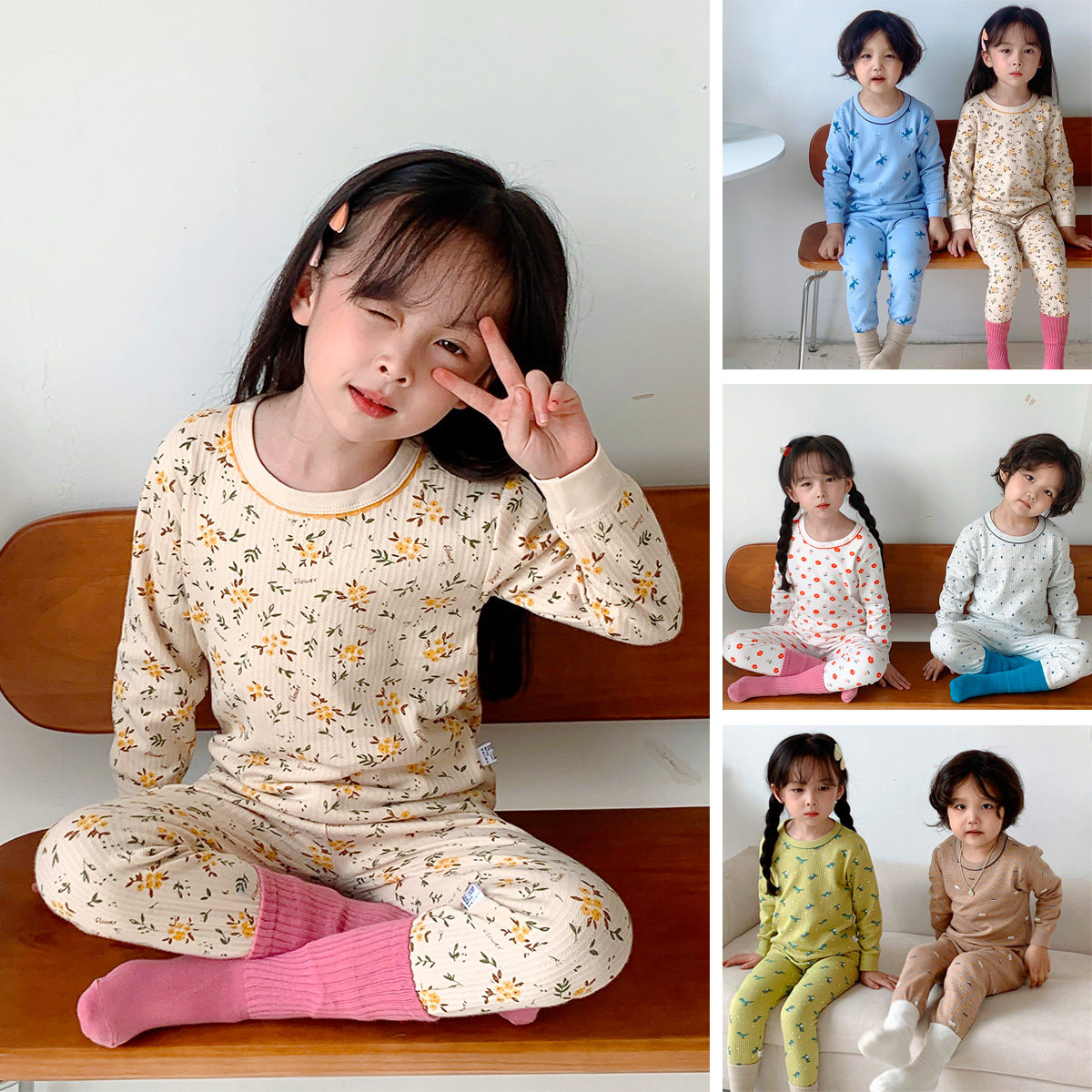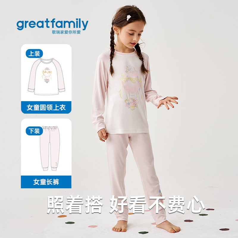 歌瑞家2025秋款男女童宝宝居家内衣圆领长袖上衣睡衣睡裤套装