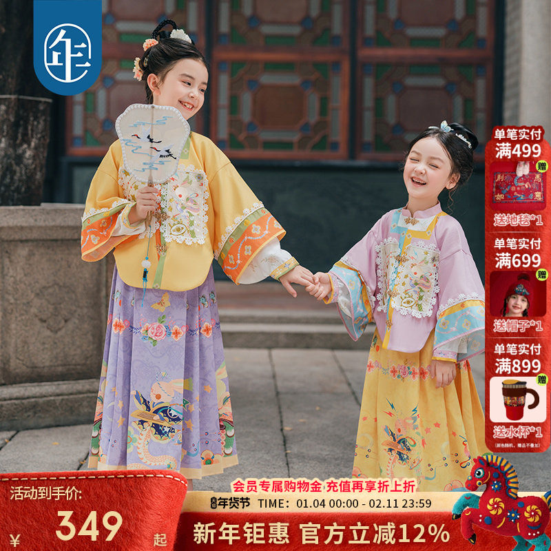 年衣童装女童马面裙秋季新款儿童长袖套装汉服唐装春秋款中式国风