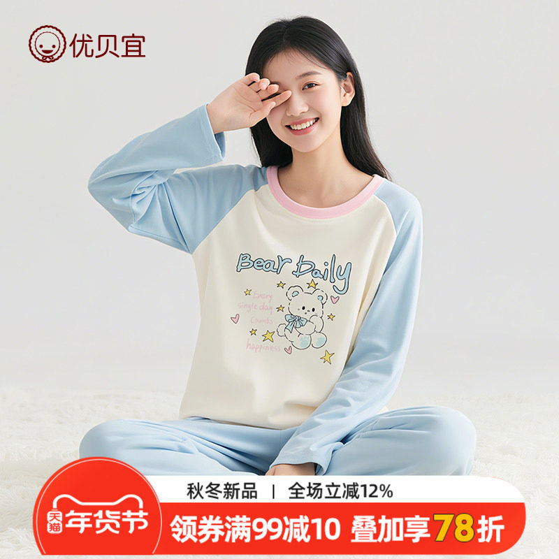 优贝宜25款女童睡衣套装春秋款长袖长裤家居服套装青少年内衣套装