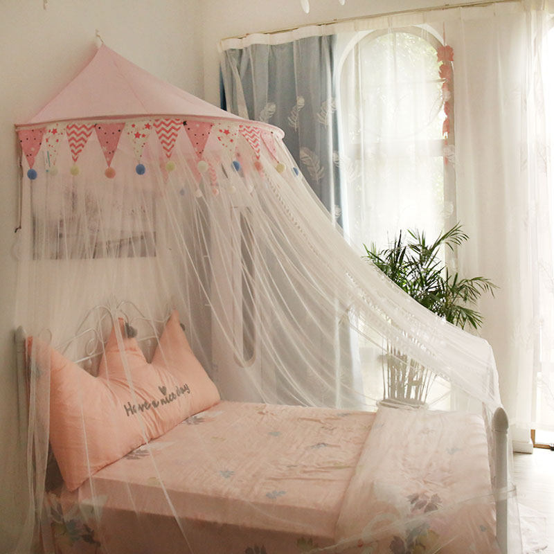 ins公主风儿童蚊帐吊顶圆顶免安装床幔1.5m1.8米/1.2女孩家用粉色