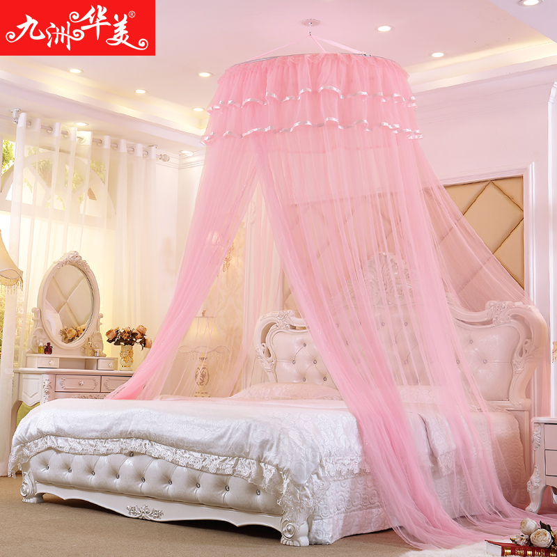 可拆洗吊顶圆顶蚊帐儿童公主床吸顶蚊帐1.5/1.8m落地免安装蚊帐