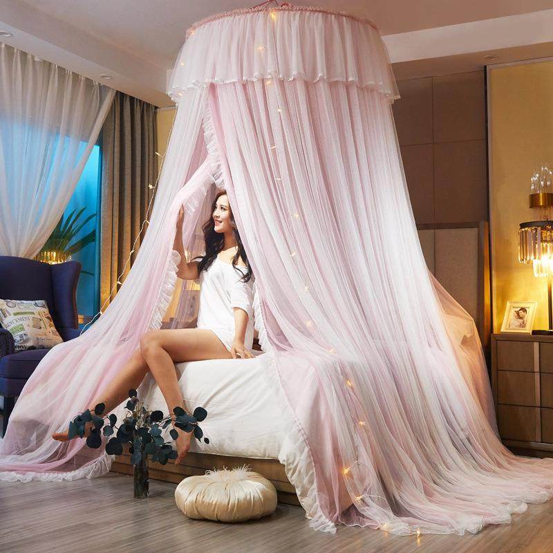 蚊帐圆顶加高公主宫廷1.5m1.8床双人床吊顶天花大空间拉绳收缩