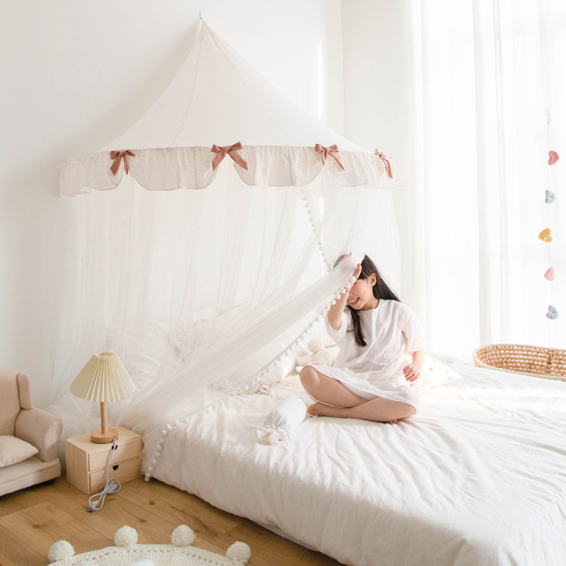 蚊帐家用免安装1.5米1.8m圆顶吊顶幔帐韩式卧室纯棉波点防蚊床幔