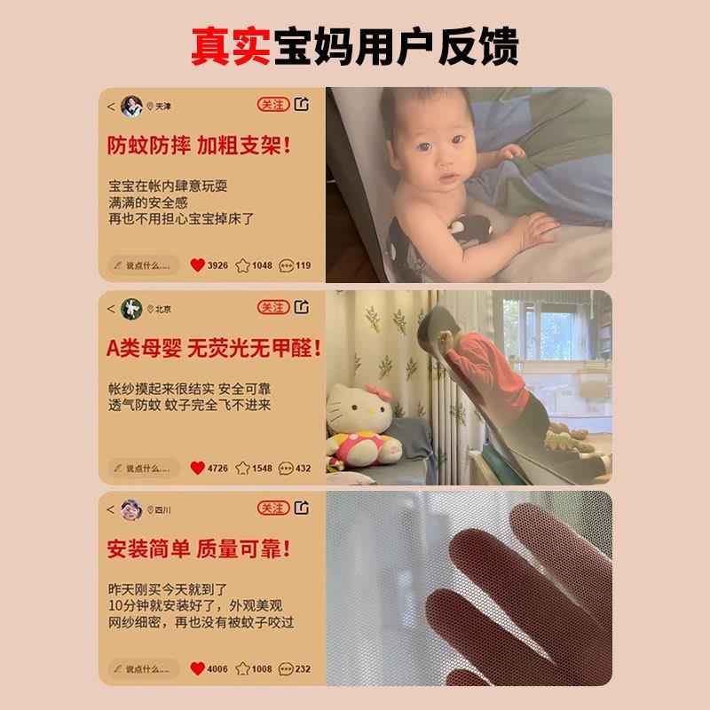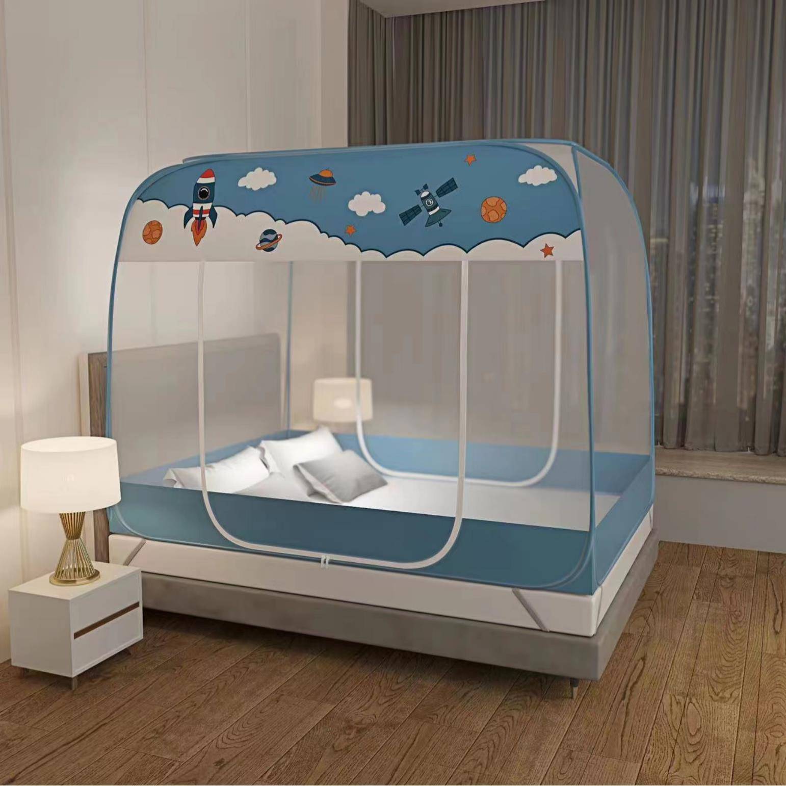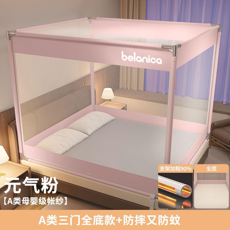 2025新型家庭蚊帐家用卧室150x190cm儿童防摔1米5床遮光u型三开门