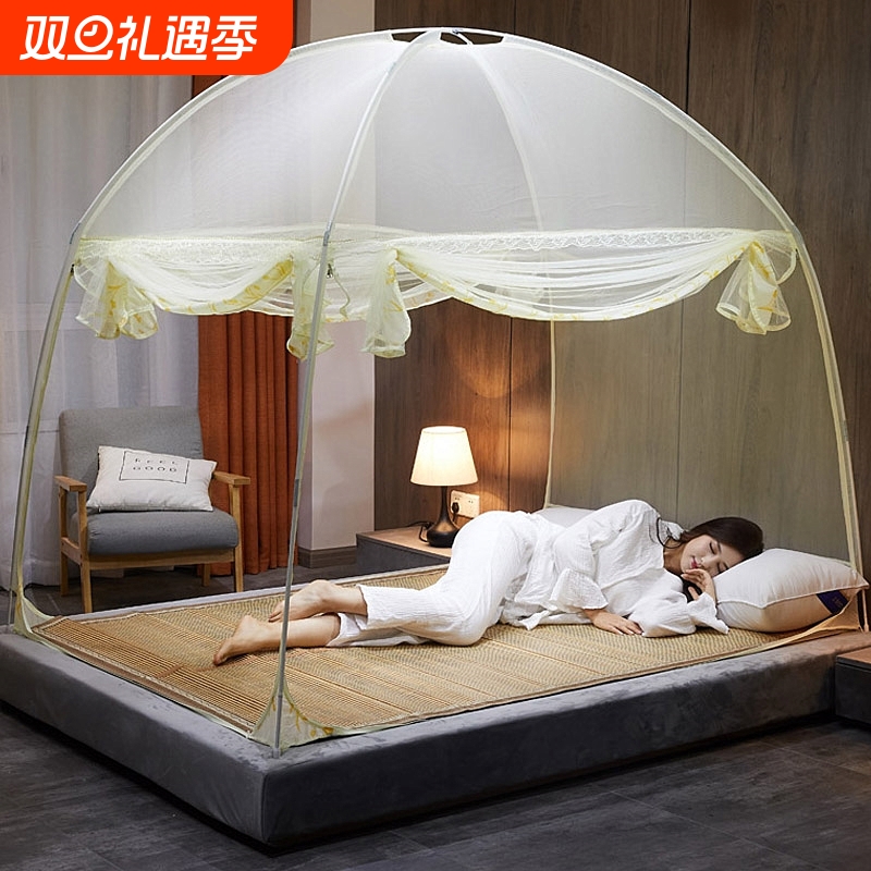 新款蚊帐蒙古包免安装拉链宿舍家用方便携带1米2m5床宝宝防摔帐篷