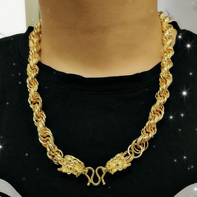 越南沙金项链男正品镀24K仿真999黄金龙头圆珠大金链子粗款黄金链