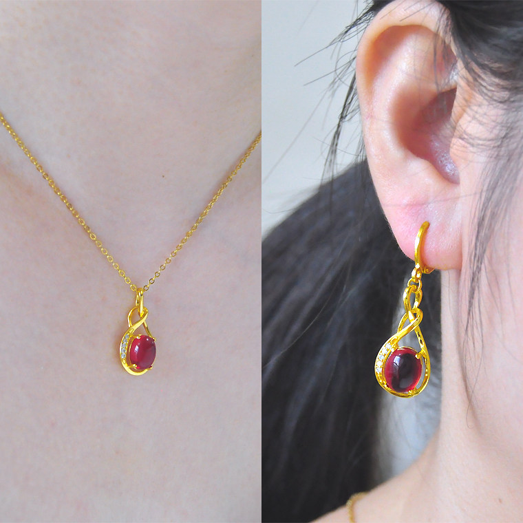 新款耳环+吊坠套装铜镀金女款项链时尚百搭链子仿真黄金链送女友