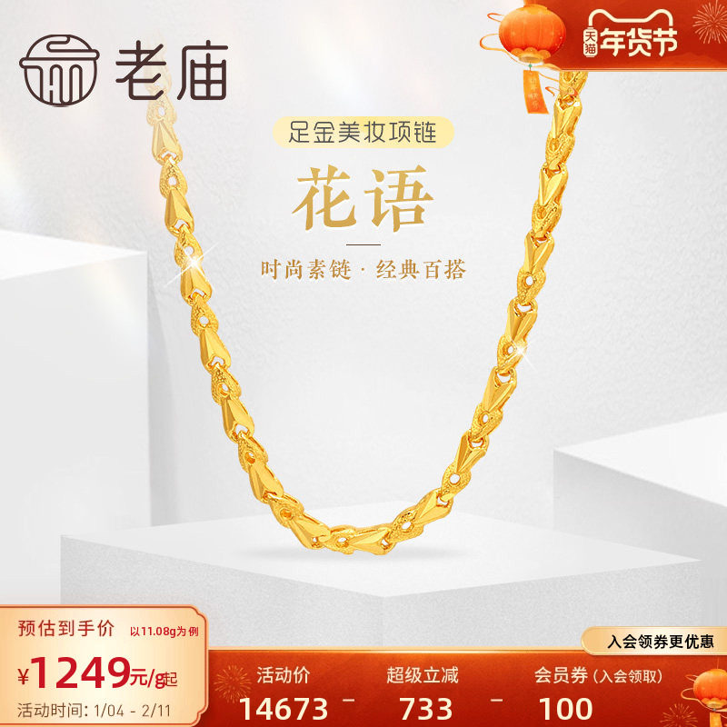 老庙黄金足金999黄金链花语小花朵美妆项链素链经典百搭官方正品