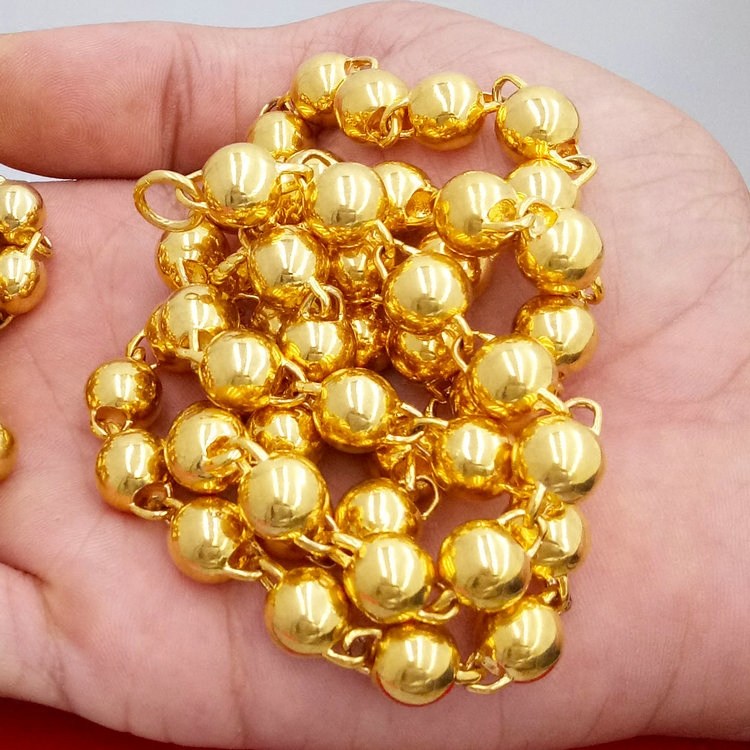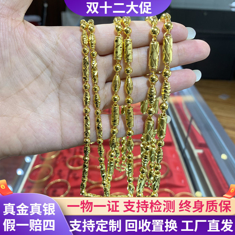 越南沙金项链男女实心圆珠仿真黄金链空心男士佛珠光珠链子不掉色