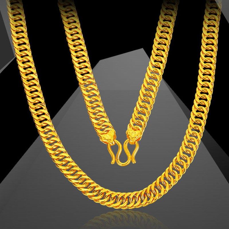 创缘仿真金项链男粗竹节链子重镀沙金项链女细锁骨链实心镀黄金链