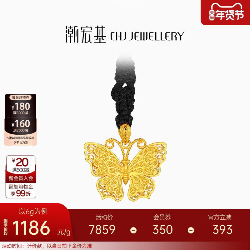 周大福代购 新款弹簧半镂空蝴蝶足金黄金链镯 克减80 计价F233750