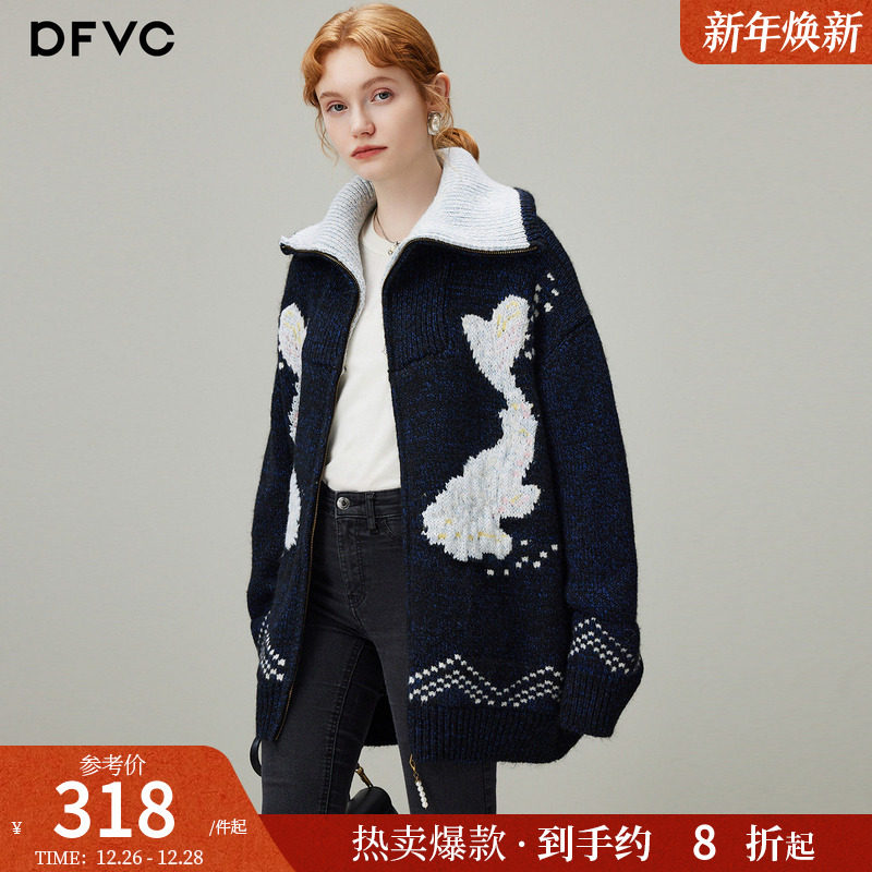 dfvc慵懒风提花针织开衫女2025年冬季新款宽松中长款加厚毛衣外套