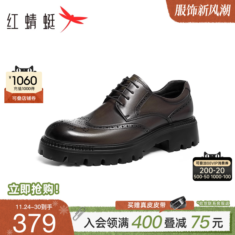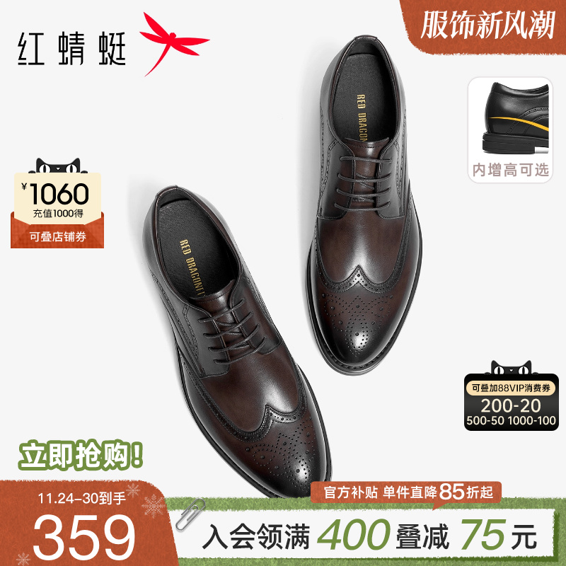 红蜻蜓正装皮鞋男款2025春秋新款男士厚底商务皮鞋真皮布洛克男鞋