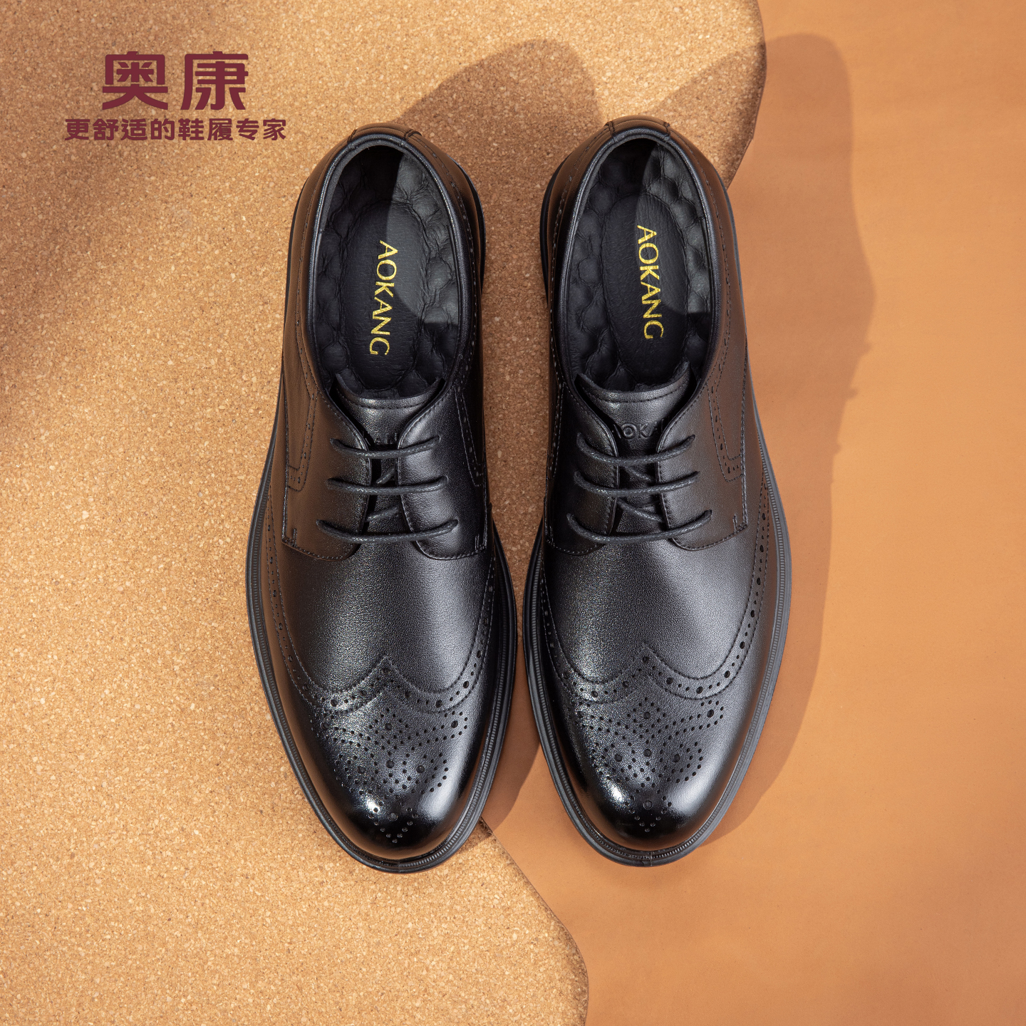 奥康 男鞋2025秋季新款商务正装布洛克男士真皮舒适通勤系带皮鞋