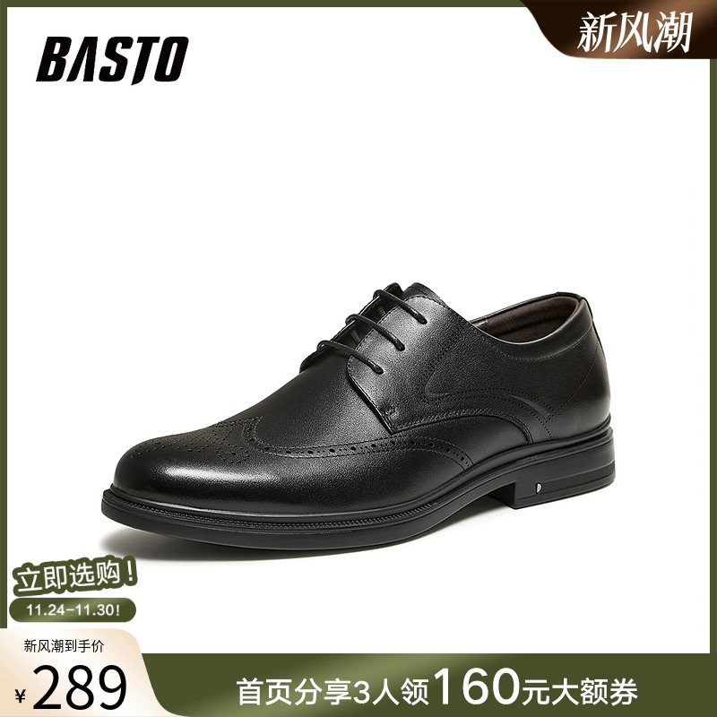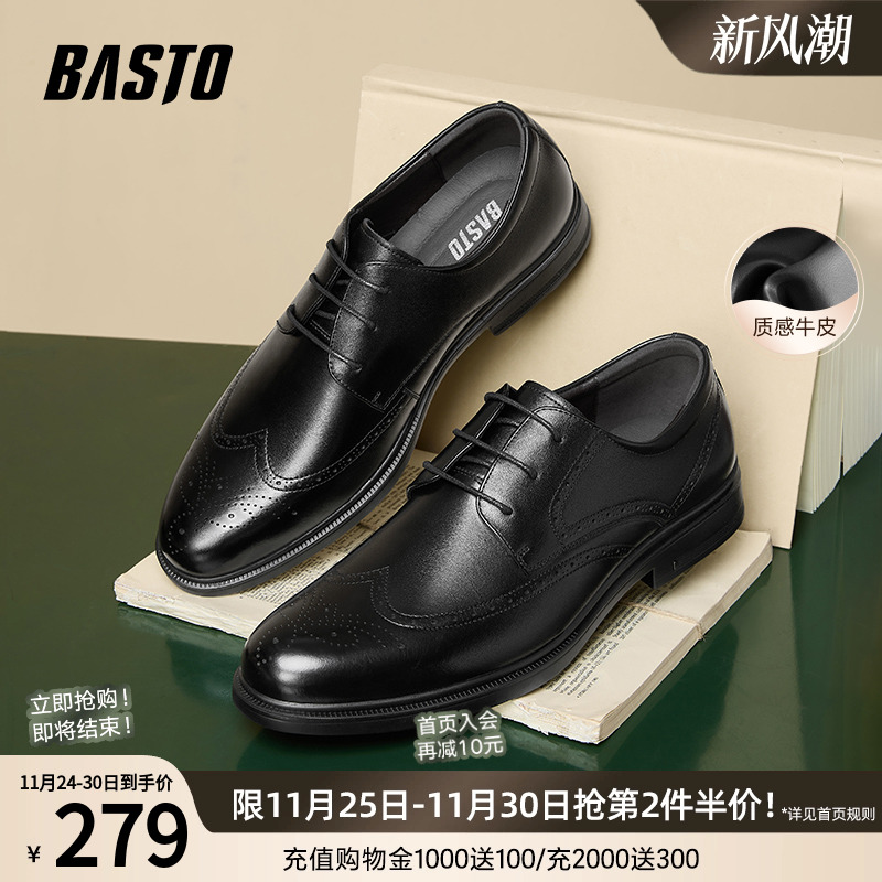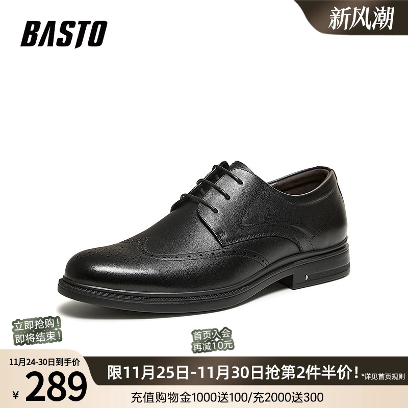 百思图2026春季新款正装皮鞋时尚商务通勤布洛克男鞋20017AM6