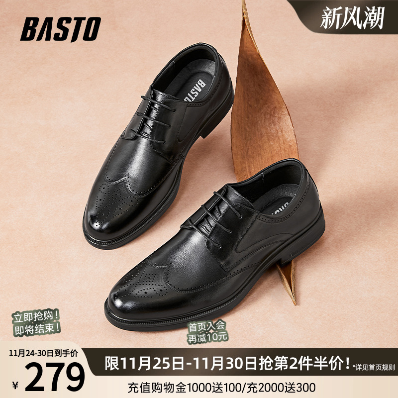 百思图25春新款时尚英伦风布洛克男士皮鞋正装新郎结婚鞋20033AM5