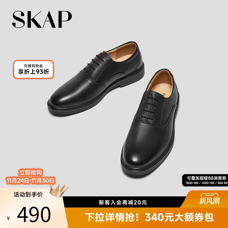 SKAP圣伽步真皮鞋秋季黑色英伦商务休闲乐福布洛克男士正装牛津鞋
